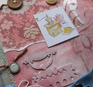 Металл - брадсы и подвески. Я включила специальную рукодельную-женскую тему: кулинарию и шитье. Ведь дюймовочка помогала по дому, значит все это умела и делала.